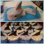 • Shark Birthday Cake and Shark Fin Cup Cakes